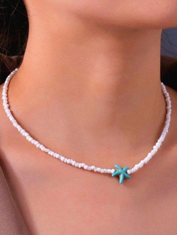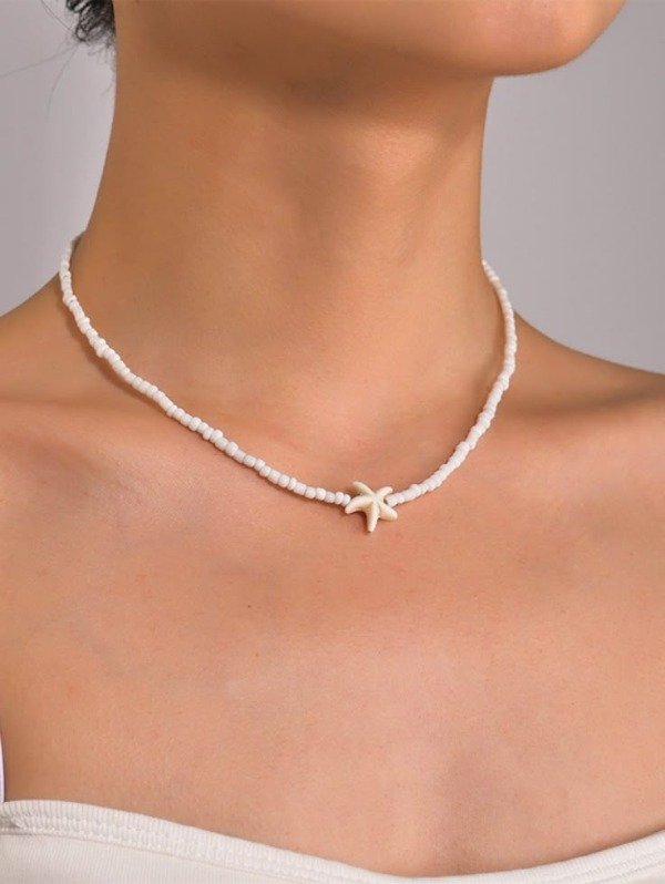 Collar mostacillas con estrellitas de p reconstituida . Podés elegir entre modelo liso y mix y tambien el color de las estrellitas. Preguntar disponibilidad de colores antes de su compra.