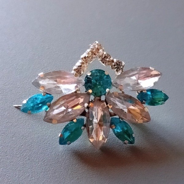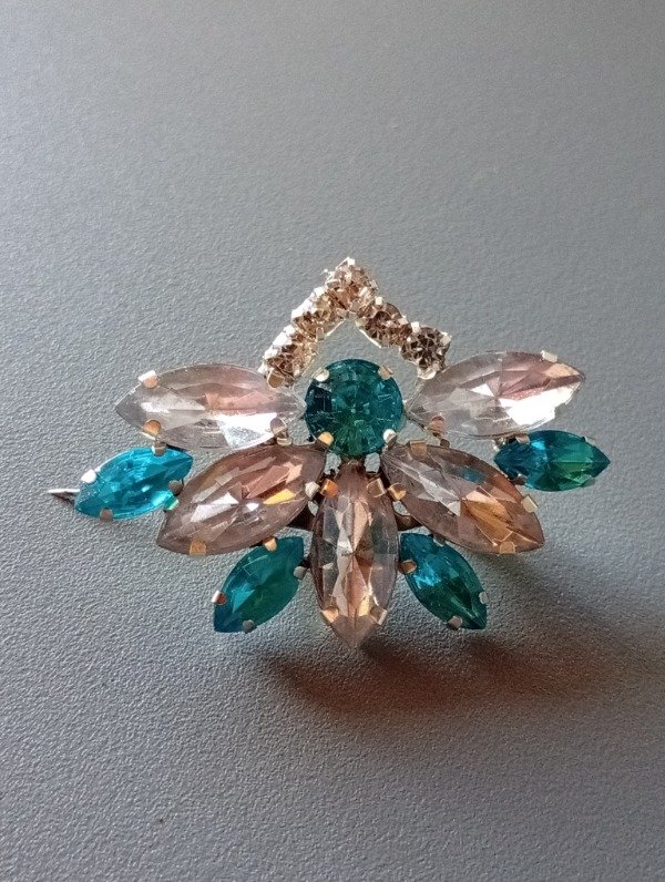 Escarapela artesanal con broche prendedor para sujetar a la prenda. Colores de gemas varian en celeste, celeste fuerte, celeste claro y celeste resina opaco.