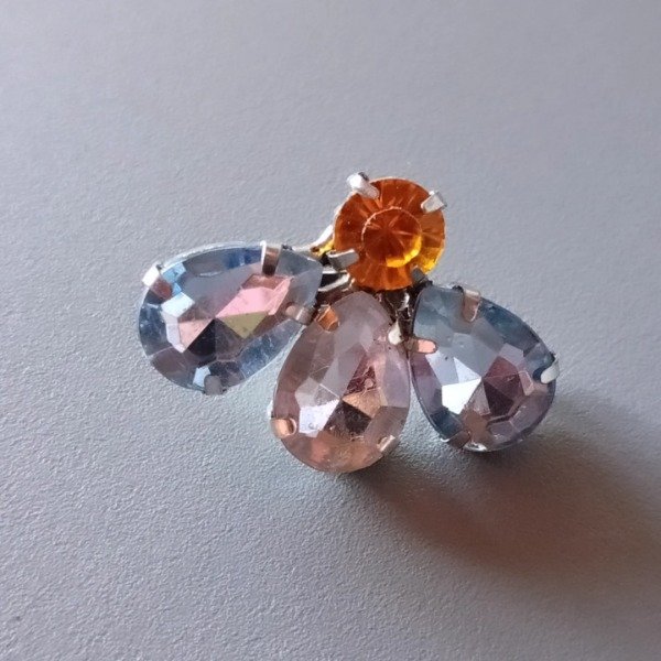 Escarapela artesanal con broche prendedor para sujetar a la prenda. Colores de gemas varian en celeste, celeste fuerte, celeste claro y celeste resina opaco.