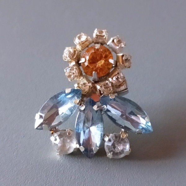 Escarapela artesanal con broche prendedor para sujetar a la prenda. Colores de gemas varian en celeste, celeste fuerte, celeste claro y celeste resina opaco.