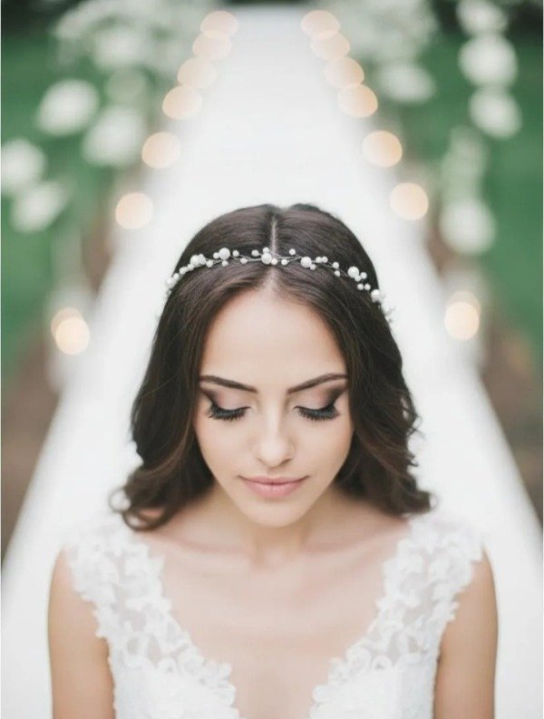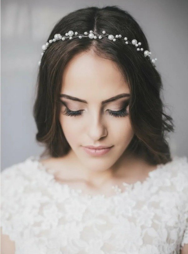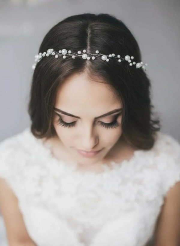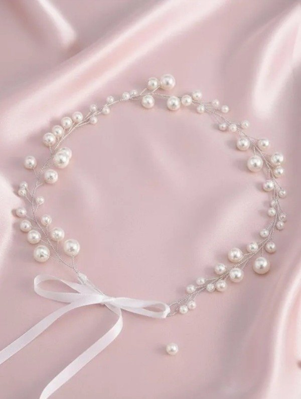 TOCADO PERLAS DE 3 TAMAÑOS, ALAMBRE PLATEADO (OPCIÓN DORADO), CON CINTA ORGANZA o RASO PARA ATAR.