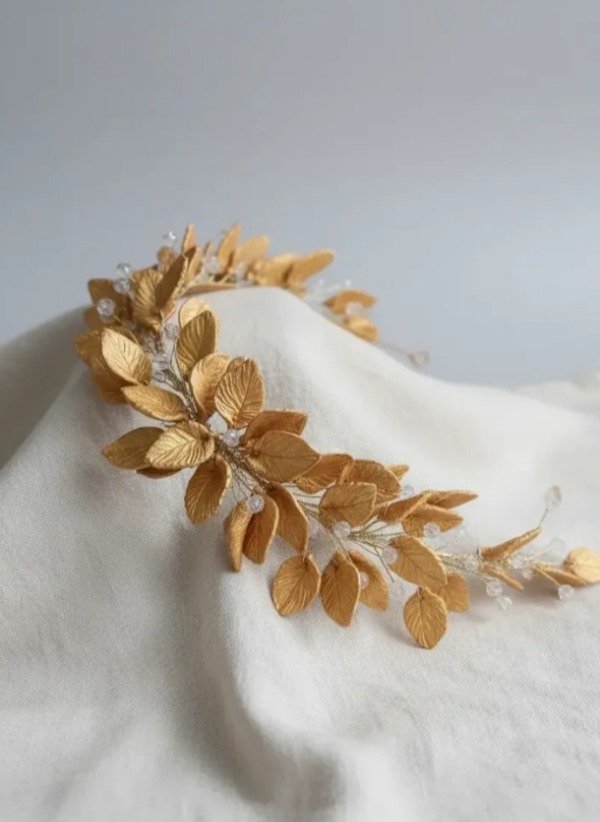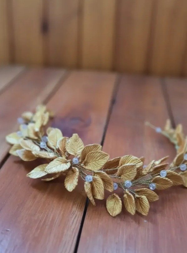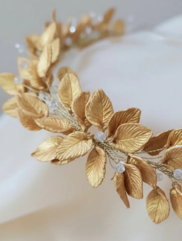 Tiara griega con hojas en porcelana y cuentas de vidrio facetadas . Se puede elegir sin cuentas y otra distribución de hojas.