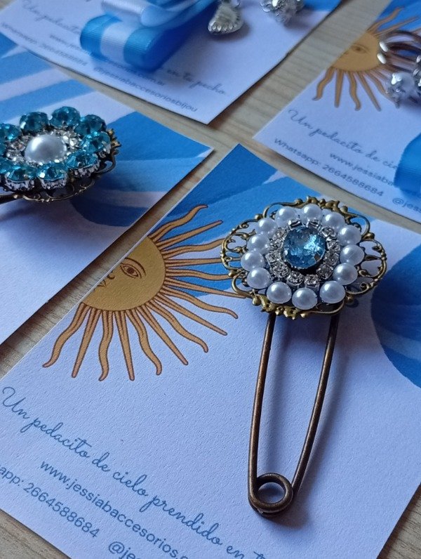 Escarapela broche ruana poncho perla
